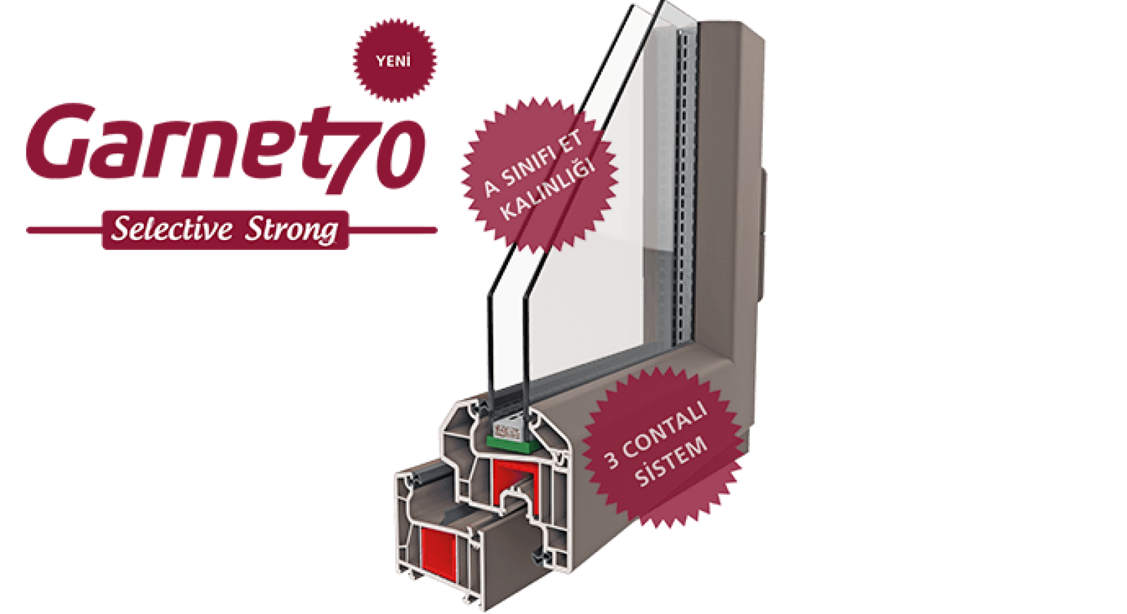 Günümüzün kent kültürü ve yapı teknolojisi yepyeni boyutlarla şekilleniyor, değişiyor. Kentler, bu değişimin farklılaşan siluetleriyle doluyor. Yeni yaşama mekânlarımız; estetik, yalıtım, konfor ve enerji verimliliği ilkelerini öne çıkartıyor. Bu değişimi yakından izleyerek, farklılaşan yapı teknolojilerinin ihtiyaçlarını yeni bir seriyle karşılıyoruz. 70'lik serileri farklı bir estetik ve yalıtım anlayışıyla yorumlayan A sınıfı et kalınlığına sahip Yeni Garnet Selective ve Yeni Garnet Selective Strong (üç contalı) modern yapıların yeni tercihi olmayı sürdürüyor.